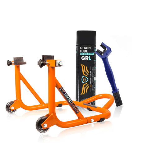 Rs. 6,335.00Unit price /Unavailable Combo of GR Chain Cleaner-500ml & GR Chain Lube-500ml & Dismantlable Paddock Stand - Orange