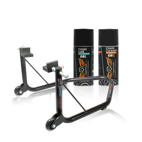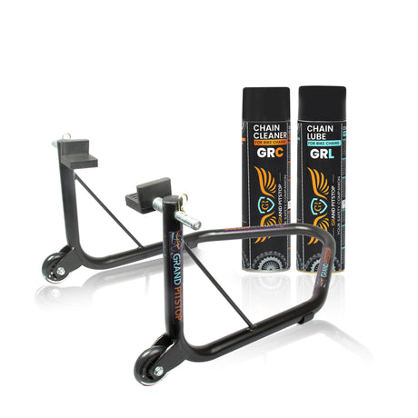 Combo of GR Chain Cleaner-160ml & GR Chain Lube-160ml & Dismantlable Paddock Stand - Black