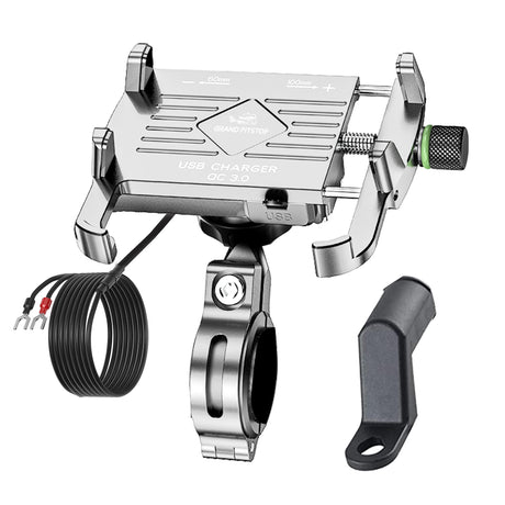 Claw Grip Aluminium Mobile Holder Mount with Charger - Black