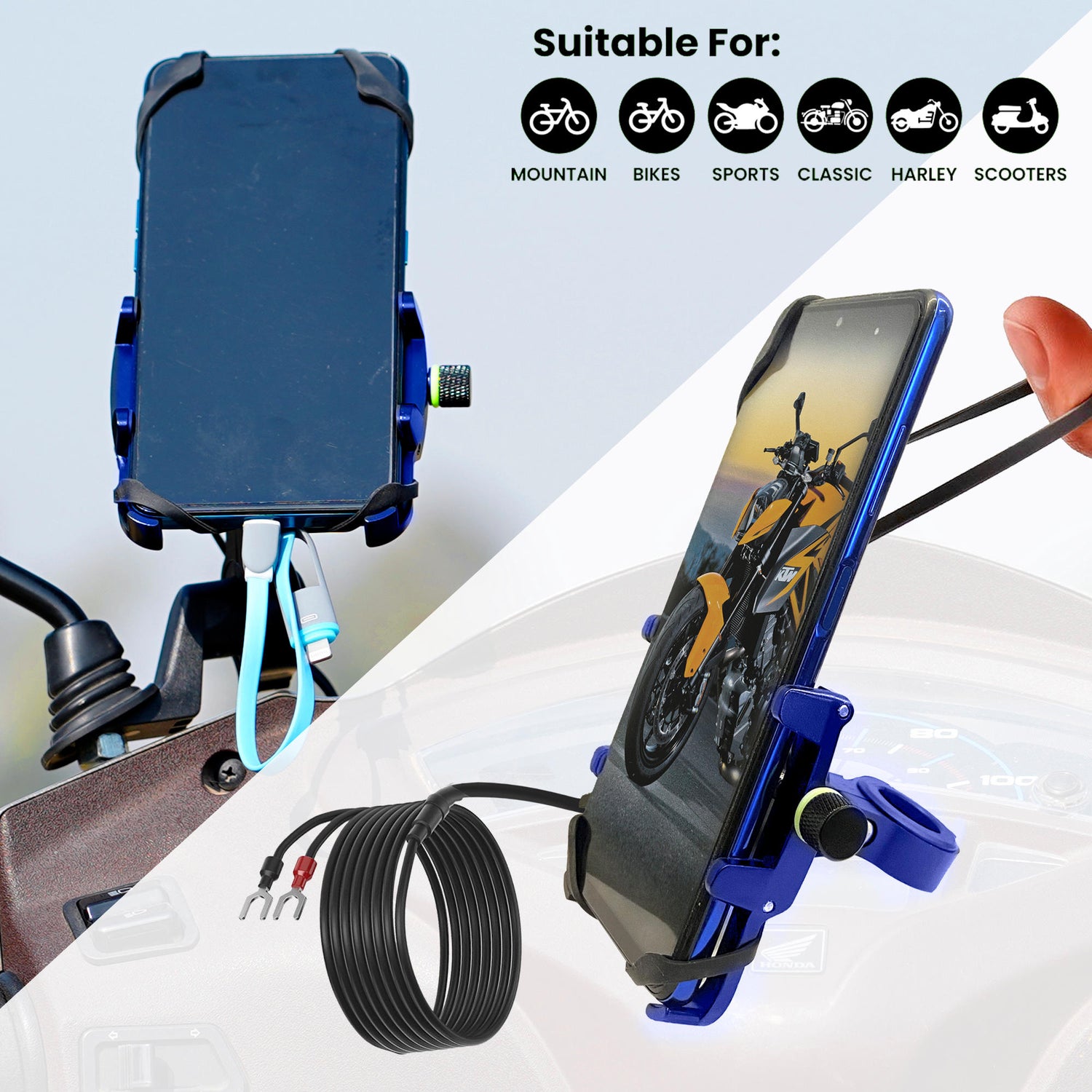 Claw with Jaw Grip Aluminium Mobile Holder with Charger - Blue is backordered and will ship as soon as it is back in stock.