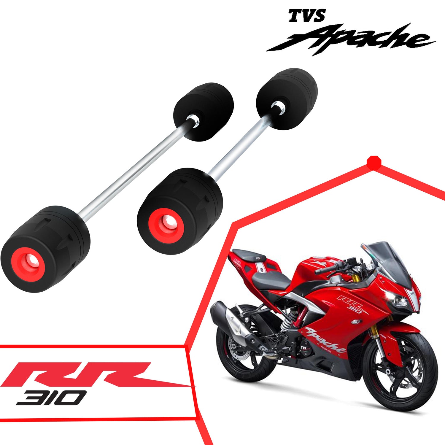 - Design: They are engineered to specifically fit for TVS Apache RR 310, attaching to the Rear fork legs to safeguard them against scratches, dents, or other potential damage.